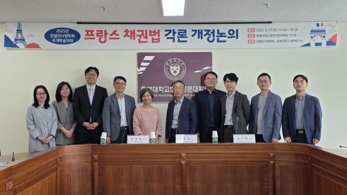 법학연구소 공동학술대회(한불민사법학회) 개최(2025.9.27.) 페이지 정보 작성자관리자 조회 57회 작성일 2026-04-03 15:31:59 댓글 0 본문 □ 일 시 : 2025년 9월 27일(토) 13:00 ~ 18:00□ 장 소 : 충북대학교 법학전문대학원 723호□ 주 제 : 프랑스 채권법 각론 개정논의(임대차, 도급, 위임, 매매)□ 주 최 : 한불민사법학회 / 충북대학교 법학연구소 목록 댓글목록 등록된 댓글이 없습니다.