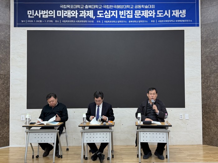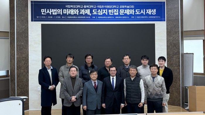 법학연구소 공동학술대회(목포대학교) 개최(2026.1.26.~27.) 페이지 정보 작성자관리자 조회 59회 작성일 2026-04-03 15:37:16 댓글 0 본문 □ 일 자 : 2026년 1월 26일(월) ~ 27일(화)□ 장 소 : 국립목포대학교 사회과학대(A8) 1101호 □ 주 제 : 민사법의 미래와 과제, 도심지 빈집 문제와 도시 재생□ 주 최 : 국립목포대학교 법학연구소, 충북대학교 법학연구소□ 후 원 : 국립한국해양대학교 세계해양발전연구소 목록 댓글목록 등록된 댓글이 없습니다.